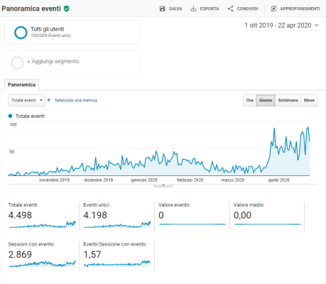 In questo caso si misurano gli eventi che per questo progetto sono le volte in cui le persone cliccano in un link specifico che conduce ad una probabile transazione.